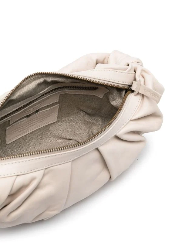 Fermeture zippée sur le dessus, bretelle portée épaule unique, compartiment principal, poches intérieures zippées. Matière : cuir de veau.