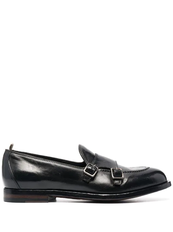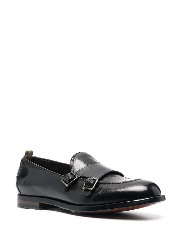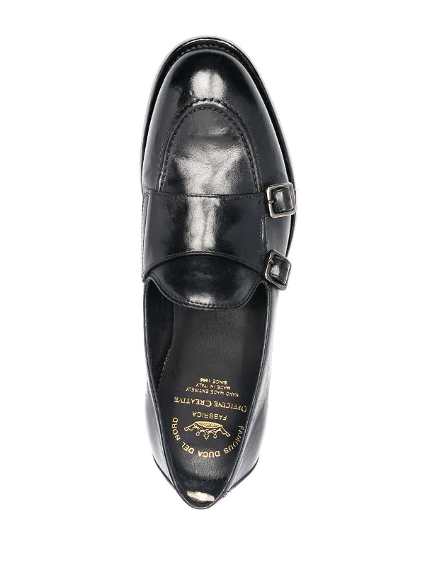 Bout en amande, fermeture à double boucles, semelle intérieure à logo, languette d’enfilage au talon, semelle plate en caoutchouc. Couleur : Noir. Matière : cuir.