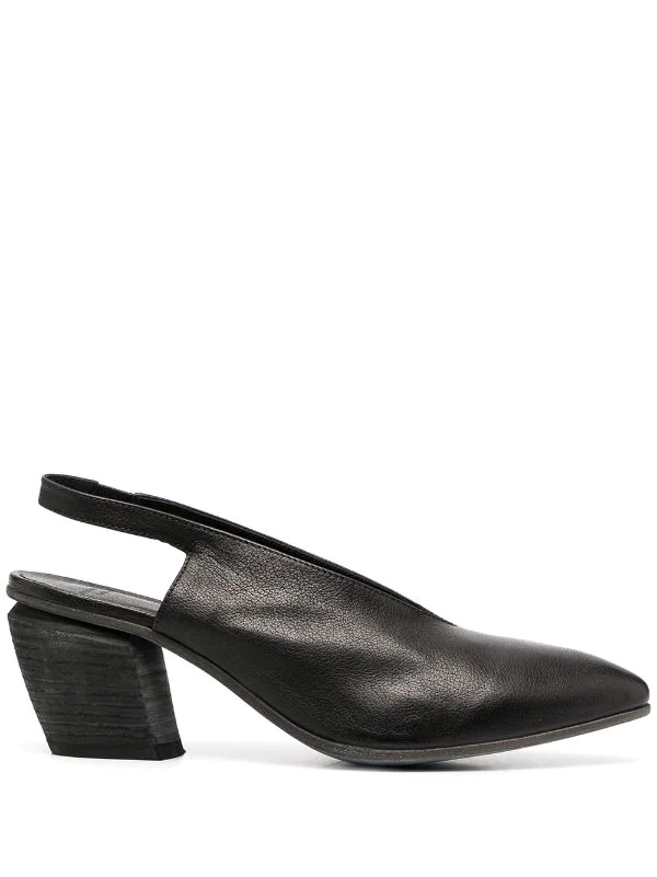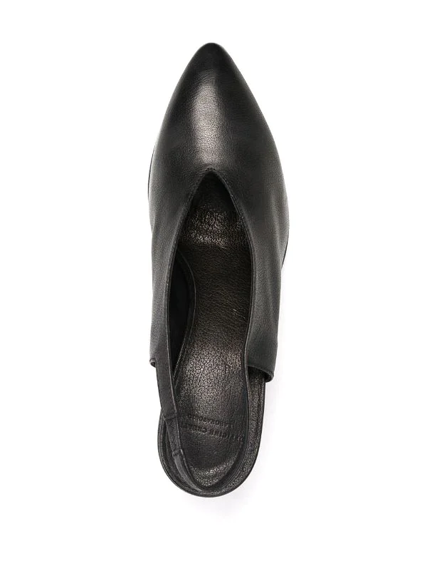 Bout pointu, design à enfiler, bride arrière, talon mi-haut épais, semelle en cuir. Couleur : noir. Matière : cuir.