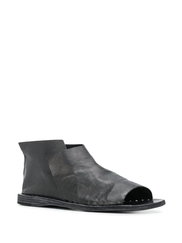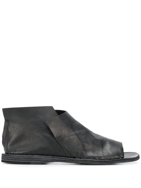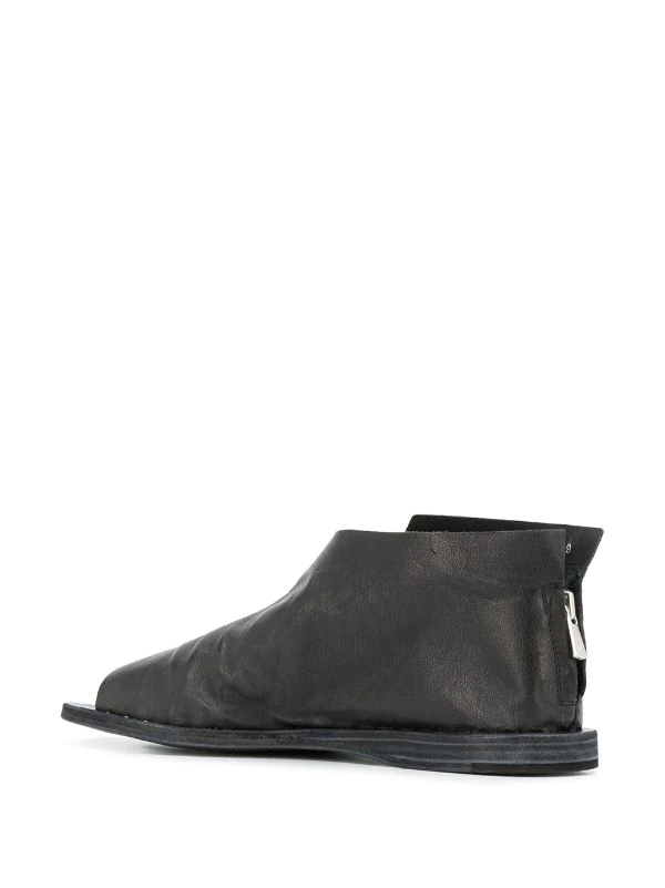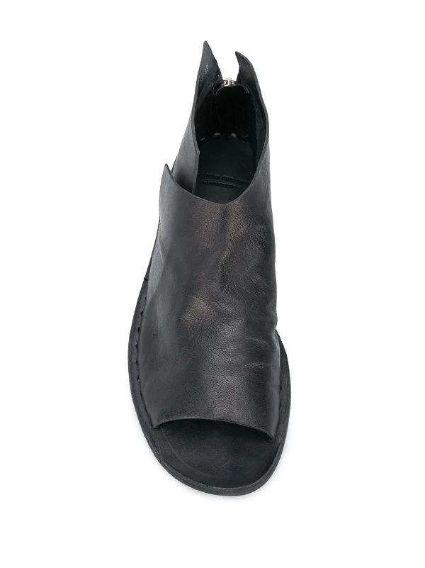 Sandales Itaca Officine Creative avec design texturé, hauteur cheville, bout ouvert, talon plat et fermeture zippée arrière. Couleur : noir.