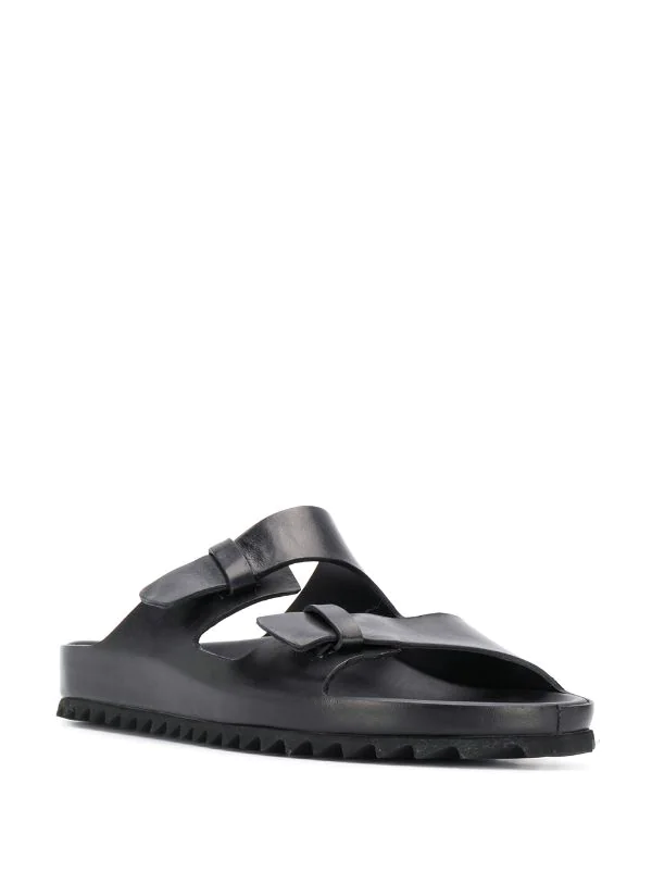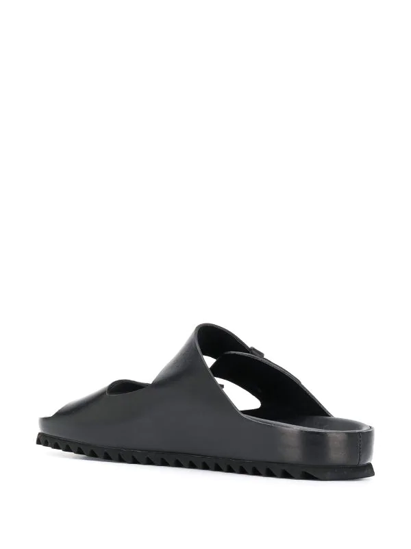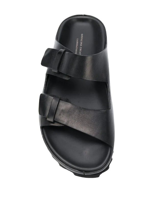 Sandales Pelagie en cuir de veau Officine Creative avec bout ouvert, semelle intérieure à logo, design à enfiler et semelle plate. Couleur : noir.