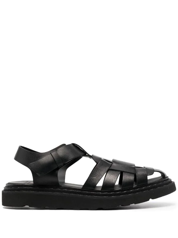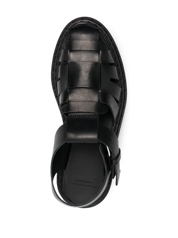 Bout rond, bride cheville à boucle, semelle intérieure à logo, semelle épaisse en caoutchouc. Couleur : noir. Matière : cuir.