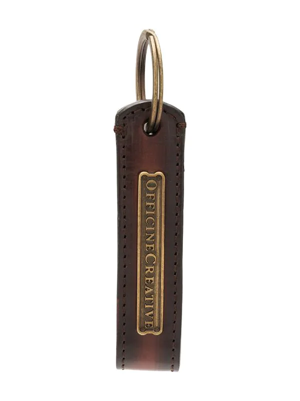 Porte-clés à logo en cuirs Officine Creative avec plaque logo et détails de coutures. Couleur : marron.