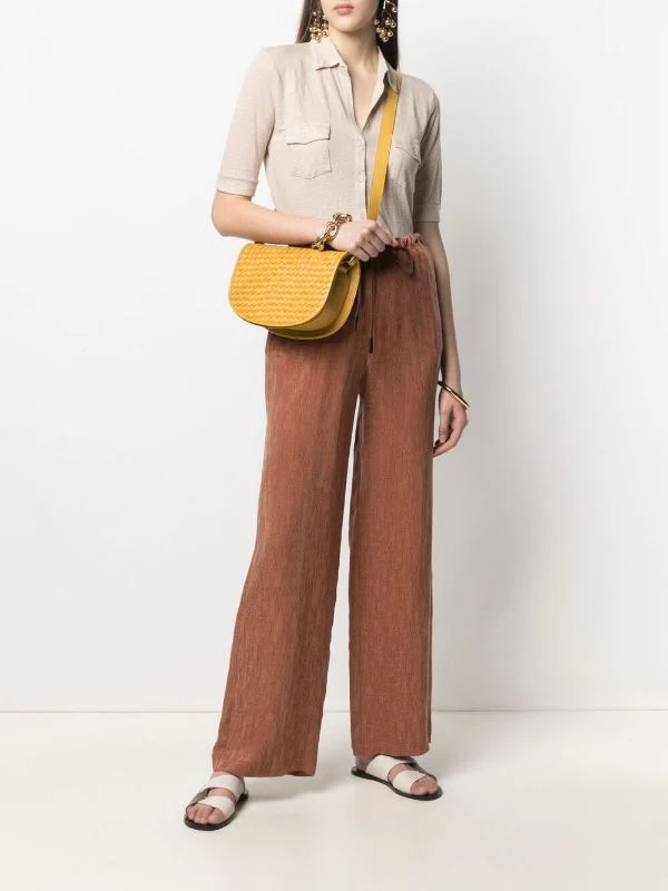 Rabat sur le dessus à fermeture magnétique, bride porté épaule ajustable, compartiment principal, poche intérieure plaquée. Matière : cuir de veau.