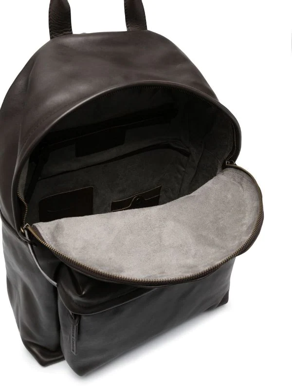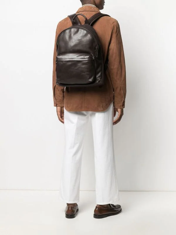 Fermeture zippée à double sens, deux brides porté épaule ajustables, anse classique, compartiment principal, poche intérieure plaquée, compartiment zippé sur le devant. Matière : cuir.