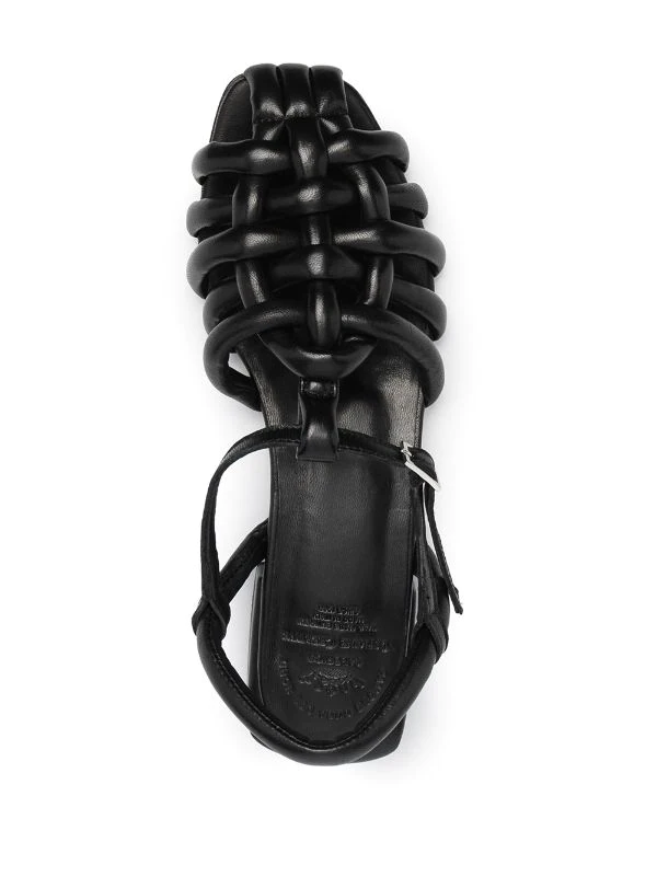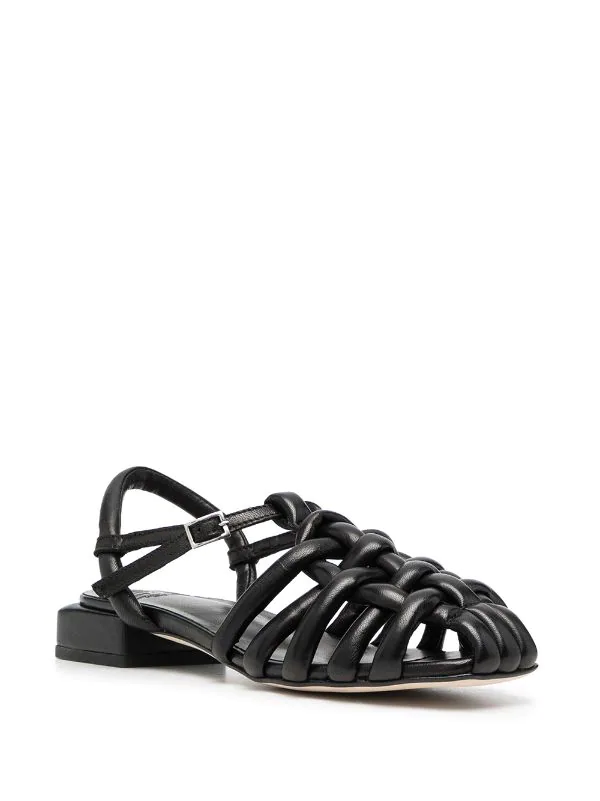 Design tissé, bride arrière, fermeture à boucles sur les côtés, semelle plate, semelle intérieure à logo. Couleur : Noir. Matière : cuir de veau.