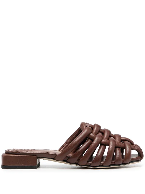 Doublure en cuir, design tissé, bout en amande, design à enfiler, semelle intérieure à logo, petit talon.