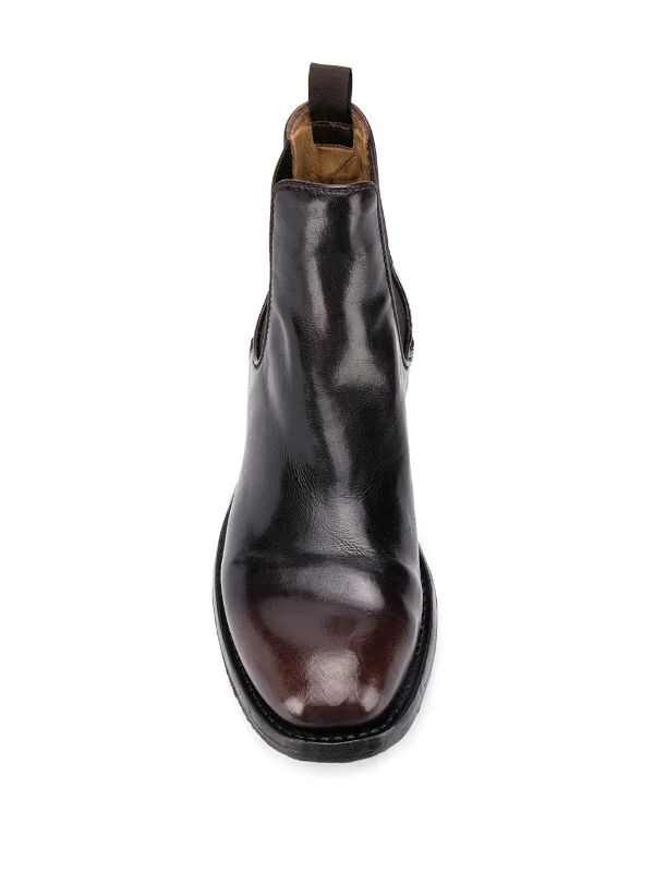 Fini poli, empiècements élastiqués sur les côtés, bout rond, design à enfiler, languette d’enfilage au talon. Matière : Cuir de veau.