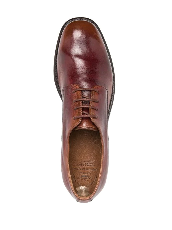 Bout en amande, fermeture à lacer sur le devant, semelle intérieure à logo, languette d’enfilage au talon, petit talon bottier. Matière : cuir.